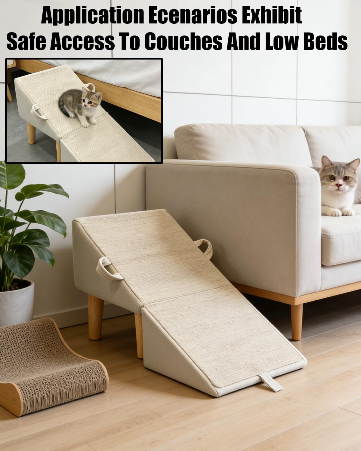 Product size: 11.81 x 11.81 x 7.87 in/30 x 30 x 20 cm Product weight: 1840g Product specifications: Product color: Khaki/Black/Off White Product material: wood and velvet Bring comfort, convenience, and style to your pet’s daily routine with this versatile foldable dog ramp. Thoughtfully designed for both safety and practicality, it provides a gentle incline to help dogs easily reach couches, beds, or other elevated surfaces. Whether you have a senior dog, a puppy, or a pet recovering from injury, this ramp offers essential support while protecting joints from unnecessary strain. Functioning as foldable dog stairs as well, this multi-use ramp adapts to your pet’s needs. Its sturdy wooden frame and soft, non-slip surface ensure stability and paw-friendly traction, giving pets the confidence to move up and down independently. When not in use, the ramp folds neatly for compact storage, saving valuable space in your home. Perfect for indoor settings, this foldable pet ramp is lightweight yet durable, making it easy to move from room to room. Whether placed next to a couch, armchair, or bed, it blends seamlessly with your décor while offering a practical solution for everyday use. If you’re looking for a reliable dog ramp for couch that combines modern style with pet-friendly features, this foldable ramp is the perfect choice. Give your furry friend the freedom to access their favorite spots safely and comfortably while keeping your home organized and clutter-free.